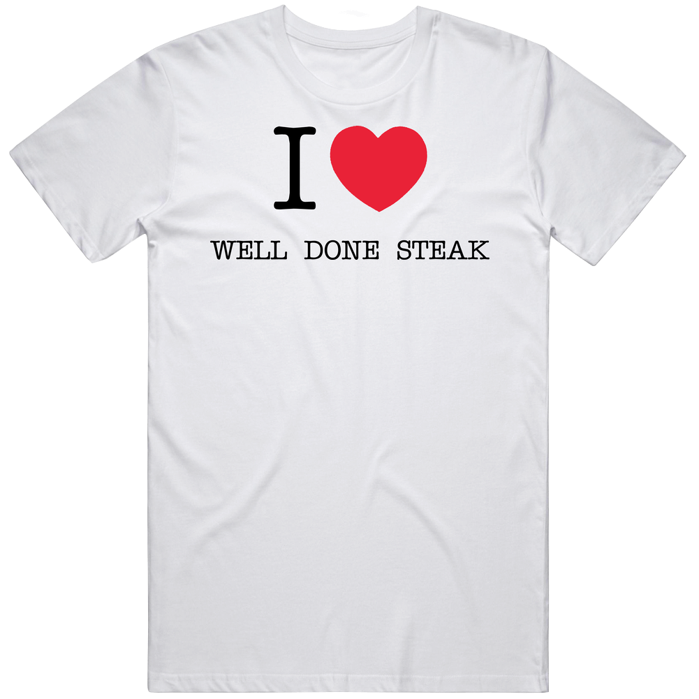 Funny I Love Luv Heart Well Done Steak Unisex White T Shirt